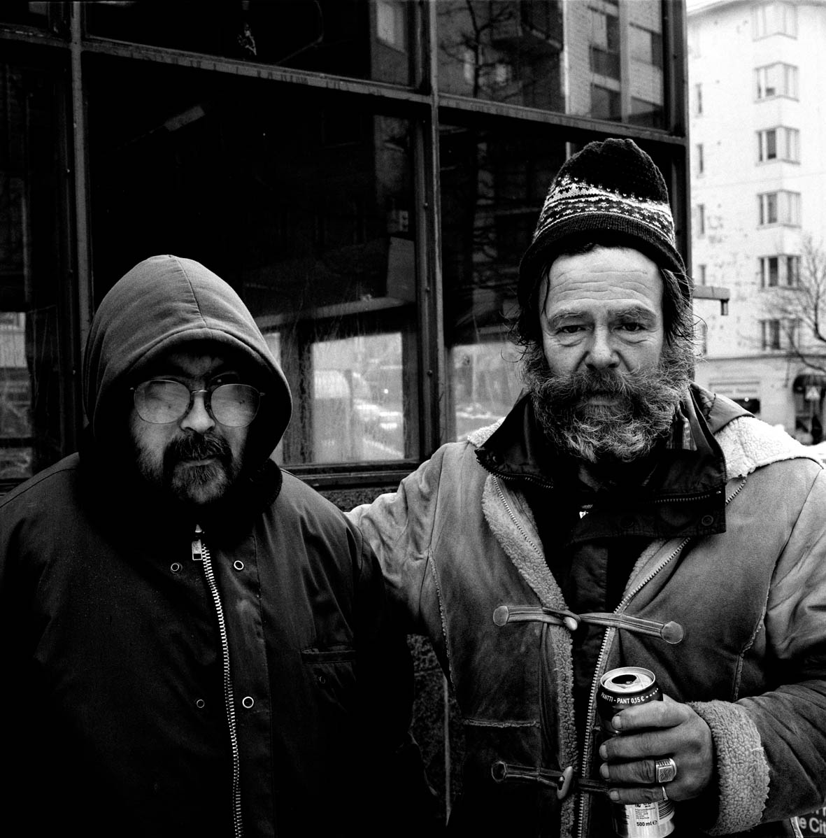 It’s midnight, a dark and extremely cold Finnish winter night. The queue in front of the door is long and everybody is cursing the cold and the long wait. Most of the people are drunk. The door remains closed even though Kalkkers should now be open (at 12 in the night). Finally the door opens, but the two social workers only let in two people at a time. This makes for an unbearably slow process and increases the frustration of those waiting outside, but finally everyone is given refuge inside. The reason for the delay is because the workers must check that no alcohol is smuggled into the facility. The people entering are checked and all the bags are placed inside a locker. The large communal room reeks of urine and alcohol, but at least it’s warm. There are five tables inside, each surrounded by five chairs. There are no beds. If someone wants to sleep, he/she must do it in a chair, leaning his/her head and arms on a table. The customers of Kalkkers can come here only nine days in a row. On the tenth night they have to find another place to sleep. This is meant to encourage them to find better place to sleep, but nobody ever finds a better place and after a night of pilgrimage around the city they all come back to Kalkkers. Everybody staying in Kalkkers has a different story to share with me. Some of them tell me how they became homeless at the end of the eighties, during the economical depression in Finland. Teemu, one of the oldest homeless I have met, narrates the story of his pilgrimages around Europe as a homeless person. With a smile he remembers the trip he took to the Caribbean Islands with his parents when he was a child. I ask him about his golden rings; I notice that the bigger one is just a cover for a thin wedding ring. His smile becomes melancholic: “I was married once” he says “but my wife is now dead”. After that he withdraws, I had touched an aching point. I was readily accepted by the homeless staying at Kalkkers. Being a foreigner helped, nobody judged my broken Finnish there, for them I am also someone existing in the borderline of this society.